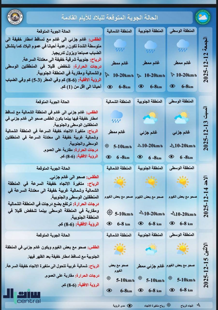 طقس العراق.. استمرار تساقط الأمطار وانخفاض درجات الحرارة