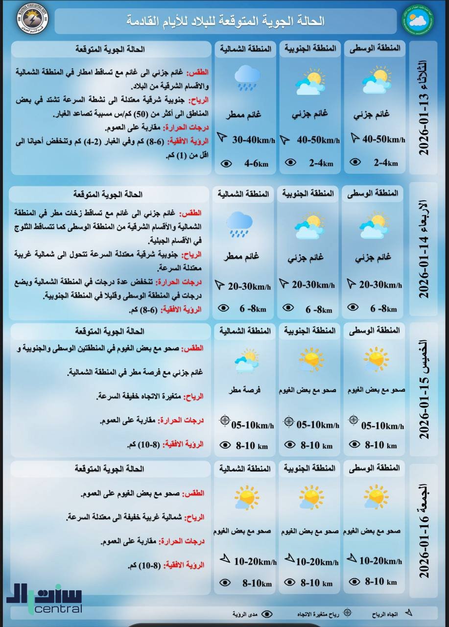 وأدناه الحالة الجوية المتوقعة في العراق خلال الايام المقبلة: