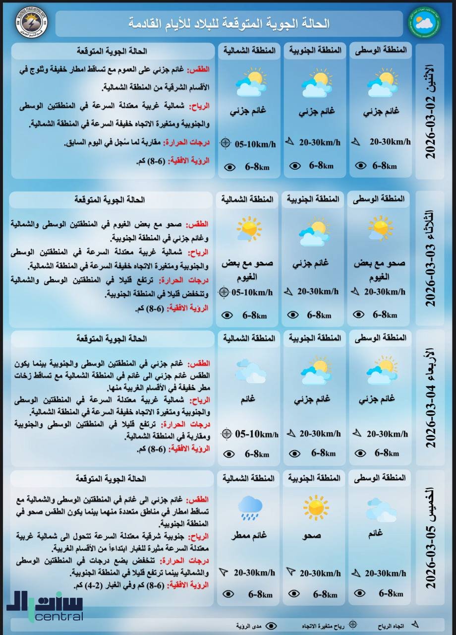 طقس العراق.. أمطار رعدية وغبار وارتفاع بدرجات الحرارة في الأيام المقبلة