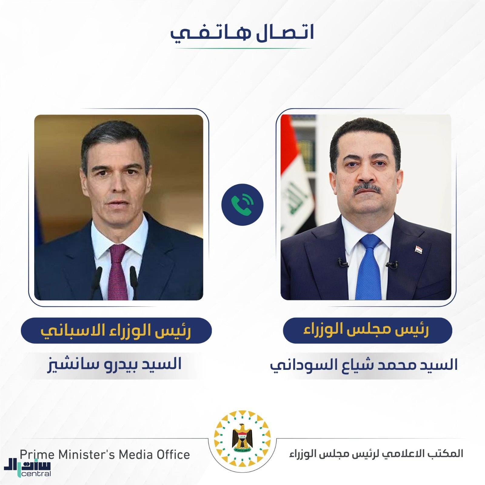 أجرى رئيس مجلس الوزراء محمد شياع السوداني، اليوم الاثنين، مباحثات هاتفية مع رئيس الوزراء الاسباني بيدرو سانشيز، تناولت تطورات الأوضاع الأمنية في المنطقة وتداعيات العمليات العسكرية على الأمن الإقليمي والدولي، وكذلك تأثيرها على سلاسل الإمدادات العالمية.